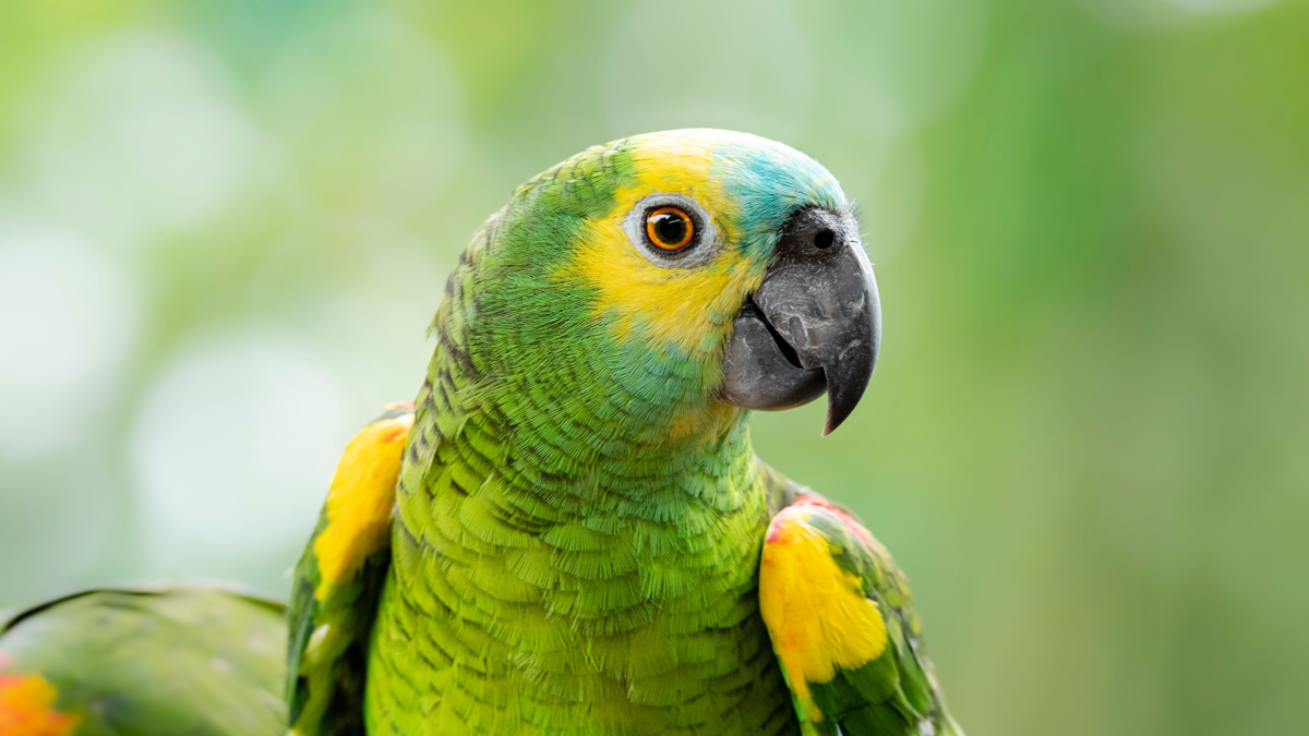 Also known as turquoise-fronted Amazon’s, these parrots are found across Argentina, Bolivia, Brazil, and Paraguay. Blue-fronted Amazons get their name from the light blue feathers on their foreheads, although the rest of their bodies are green and they have yellow around their eyes. Blue-fronted Amazons prefer tropical and subtropical forests where they nest in tree cavities. Females lay between three and five eggs and chicks leave the nest approximately 60 days after hatching. Blue-fronted Amazons are particularly noisy birds and are known for screeching loudly, although they do have some talking ability.